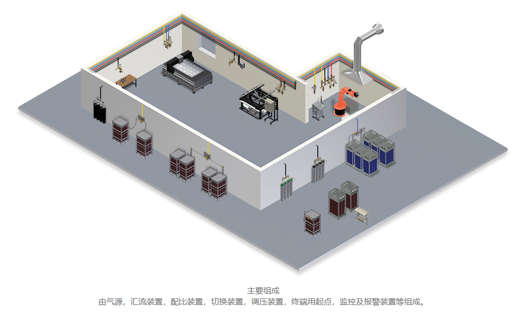 優(yōu)勢:提高生產(chǎn)效率:通過管道網(wǎng)絡快速供氣,減少氣瓶更換時間。