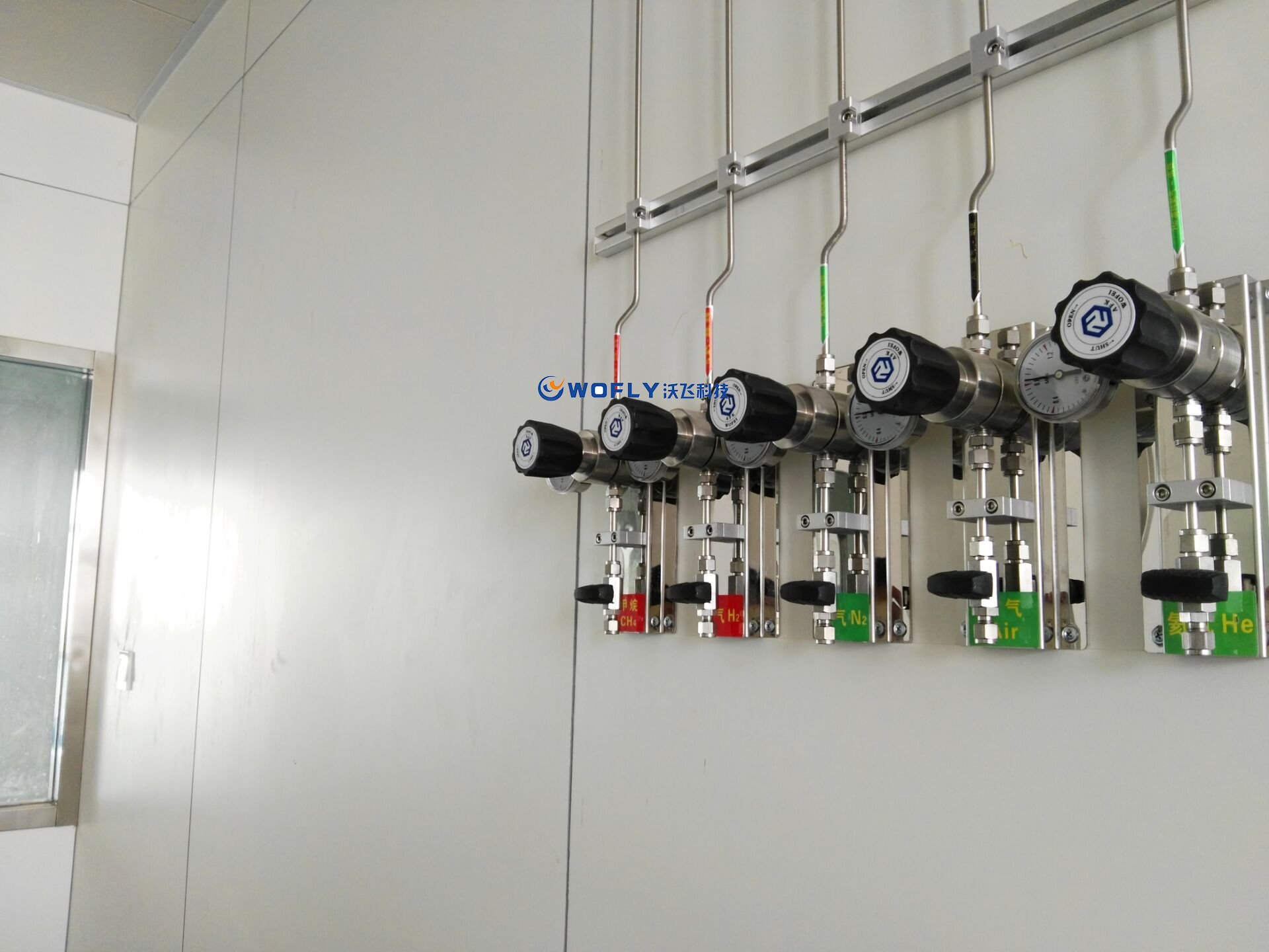 3.  解決了壓力問題。沃飛實(shí)驗(yàn)室集中供氣的二級減壓系統(tǒng)能穩(wěn)定、有序的將每種氣體都安全輸送到使用點(diǎn),減少壓力風(fēng)險(xiǎn)。同時(shí),整個(gè)氣路系統(tǒng)壓力最大的地方也就是氣瓶的出口,由于氣瓶間相對獨(dú)立,可以減少氣瓶壓力的可能危害,將對人體和儀器的危害降到最低。